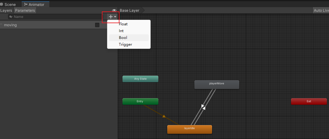 通过[SerializeField] private Animator animator;创建对象animator = GetComponentInChildren<Animator>();获取到子类中的动画moving = rb.velocity.x != 0;animator.SetBool("moving", moving);