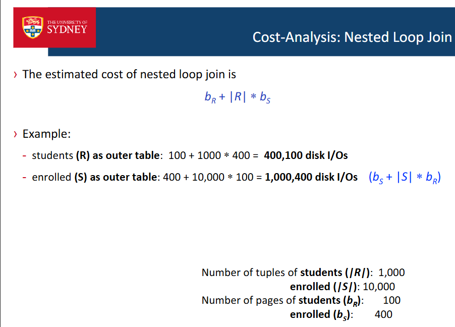 # 4. 连接操作 (Joi - 嵌套循环连接(Nested Loop Join):适用于任意连接条件,但在 I/O 方面代价较高。需要逐一扫描每一页来查找匹配项。