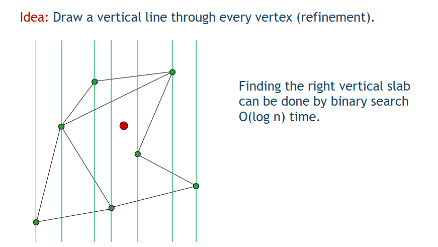 然后,找出在哪个 slab 后,我们可以再进行一次二分查找,从而找到点在哪两个线段之间。